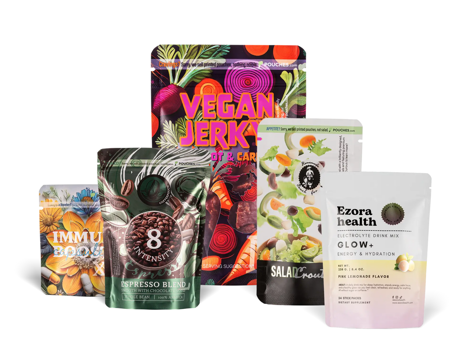 Our Pouch Configurator lets you easily build your stand-up pouch. Choose materials, sizes, and custom extras, or upload your design – all in a few simple steps for a product that fits your brand perfectly.